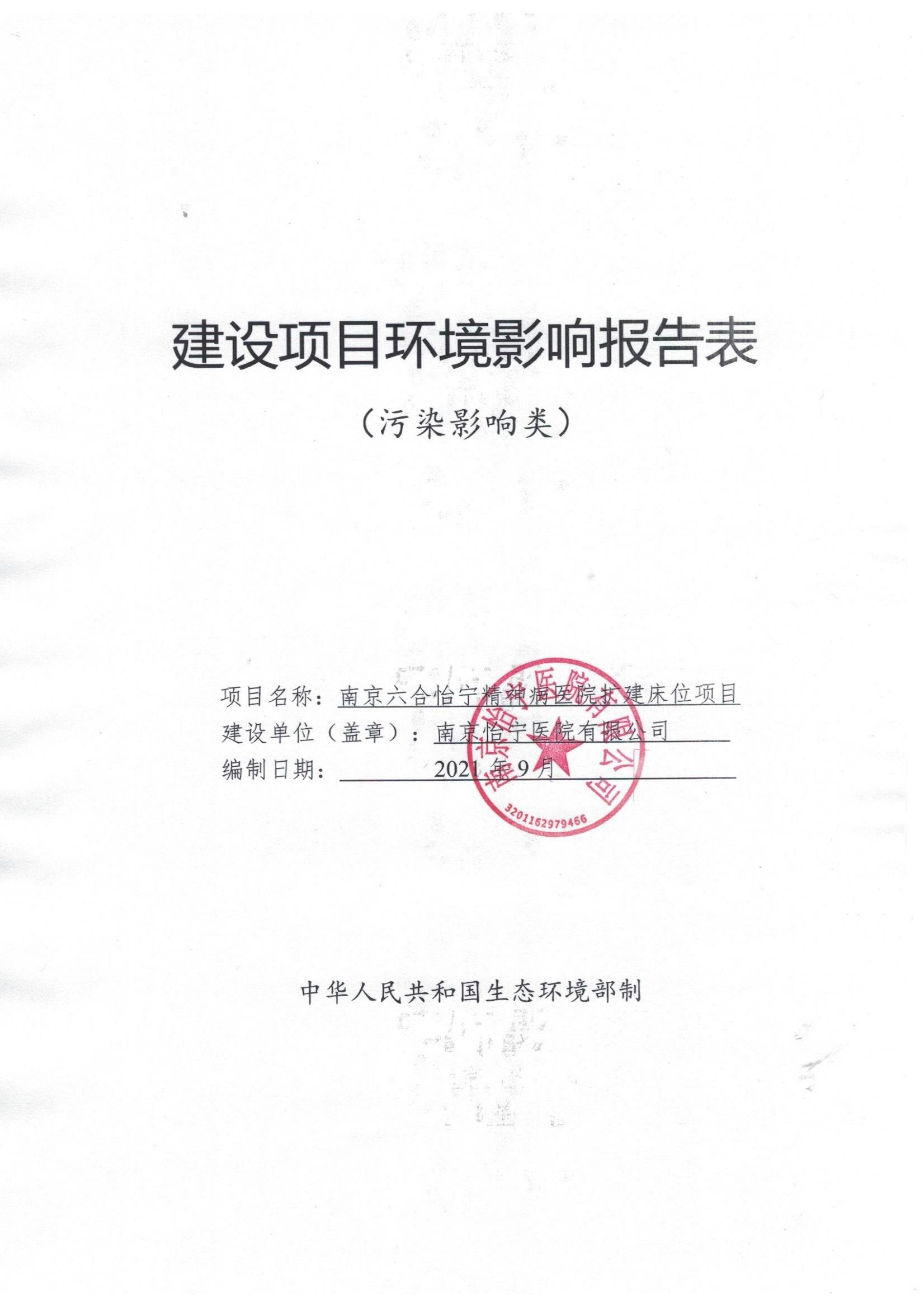 南京六合怡寧精神病醫(yī)院擴建床位項目公示